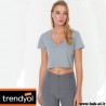 بلوز طرح دار زنانه با آستین کوتاه با تزئین نوار گیپوری شیک