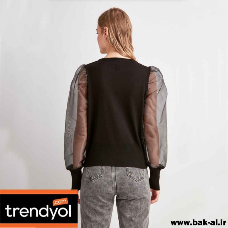 بلوزبافت نازک با آستین توری مشکی مجلسی