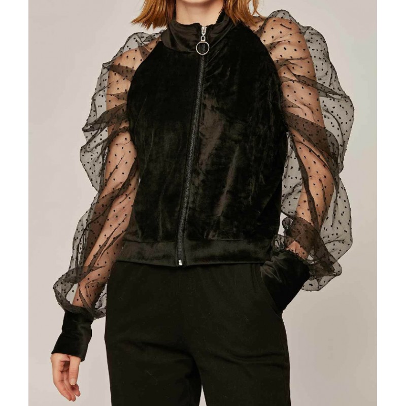 سوشرت مخملي نرم زیبی با آستین توری مشكي شیک و مجلسي